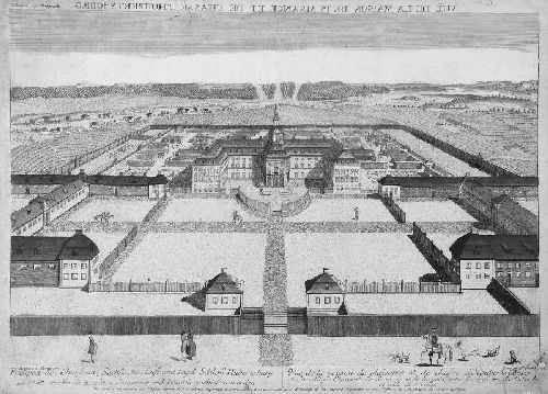 080 F. Riedel "Prospect des Churfürstl. Sächsischen Lust und Jagd Schloss Hubertsburg". Spätes 18. Jh.