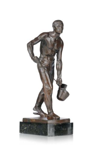 Bronze, gegossen und schwarzbraun patiniert. Auf einem schwarzen Marmorsockel montiert. Auf der Oberseite der Plinthe re. geritzt signiert "G.Janensch" und datiert sowie auf der Rückseite mit dem Gießereistempel "Lauchhammer", sowie dem Schlagstempel "Bildguss" und nummeriert "180".