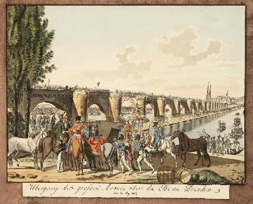 084 Unbekannter Künstler "Übergang der großen Armée über die Elbe zu Dresden". 1813.