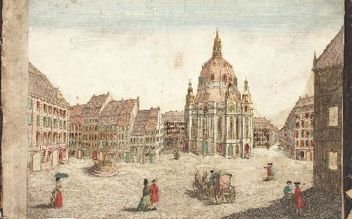 085 Unbekannter Künstler "Die Dresdner Frauenkirche und Neumarkt". 2. Hälfte 18. Jh.