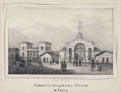 089   Carl Wilhelm Arldt "Bahnhof der leipzig=dresdner Eisenbahn in Leipzig". Um 1830.