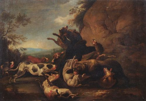 009 Carl Borromäus Andreas Ruthart (Nachfolge), Hundemeute, die Bären angreifend. Frühes 18. Jh.