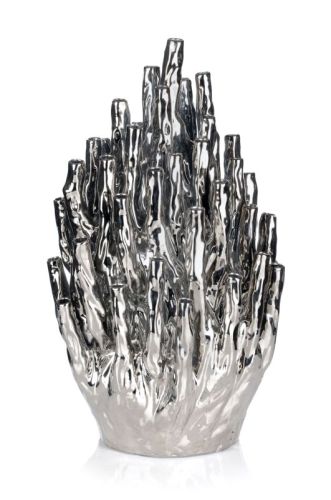 Porzellan, hohl gearbeitet, silberfarben glasiert. 50 Soliflorvasen in Form von Korallen. Ungemarkt.