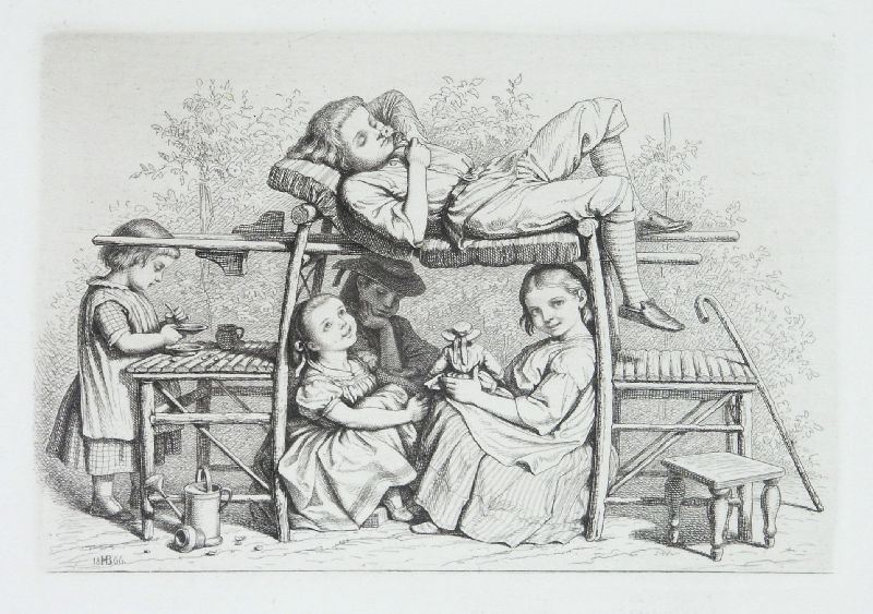 096 Hugo Bürkner "Spielende Kinder im Garten". 1866.