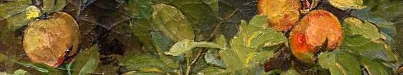 Malschicht mit vereinzelter Krakeleebildung im o.re. Bereich. Bezeichnung re. neben der Signatur möglicherweise nachträglich übermalt.