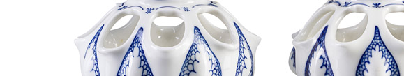 Nach Vorbild chinesischer Porzellane (vgl.: Teekanne. Jingdezhen, China. Qing-Dynastie, Kangxi, Staatliche Kunstsammlungen Dresden, Porzellansammlung, InvNr. PO 4114) wurde dieser unterglasurblaue Fond