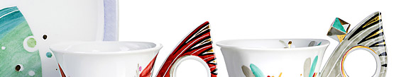 788 Zwei Tassen und ein Teller aus dem Service "Abrakadabra". Sabine Wachs für Meissen. 2001.