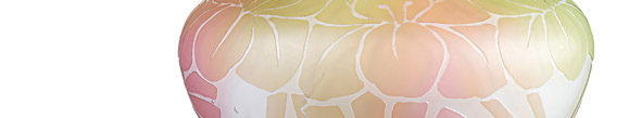 Farbloses Glas, mit opakweißem Unterfang und rosa, grünem und orangenem Überfang, formgeblasen. Die Wandung mit reliefiert geätztem, stilisiertem Seerosen-Dekor. Im Dekor in flacher Hochätzung ligiert monogrammiert "BW".