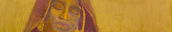 Bildträger mittig mit unscheinbarer horizontaler Knickspur. Malschicht in den Ecken o. und u.re. mit kleinen Farbverlusten. Verso mit Klebstoffspuren und montierungsbedingten Materialverlusten.