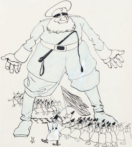 Pen drawing in Schwarz und Blaustift, mit Weißkorrekturen. In der Darstellung betitelt. Auf dem Untersatzpapier von fremder Hand alt bezeichnet. Wohl eine Bildvorlage für die "Jugend".
