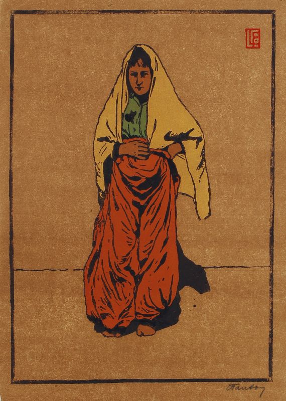 Wood cut in colours auf Japanpapier. Im Stock monogrammiert "LF" (ligiert), in Blei signiert u.re. "LFanto".