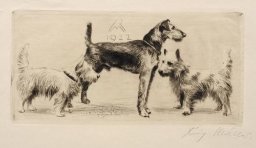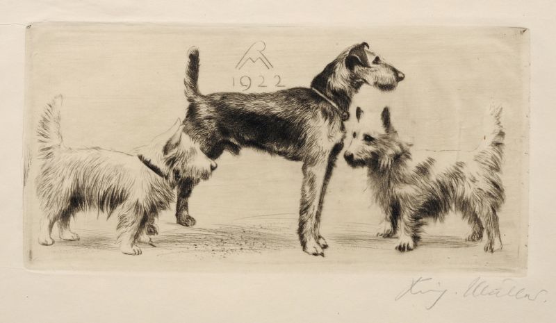 479   Richard Müller "Pekinese sitzend" / "Hundegesellschaft" / "Italienisches Fuhrwerk". 1921 / 1922 / Wohl 1920's.