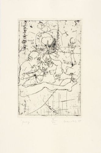 Various printing techniques. Kassette mit 19 Arbeiten und einem Titelblatt. Jeweils signiert sowie überwiegend datiert, betitelt und nummeriert. Teils mit Trockenstempel der Künstler. Verlegt von Erhardt und Gudrun Holley, Karow 2005. In der originalen Leinen-Kassette. Darin ein Einlegeblatt mit einem persönlichen Gruß.