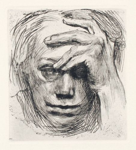 387 Käthe Kollwitz"Selbstbildnis mit Hand an der Stirn". 1910.