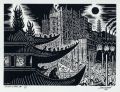 Wood cut. Im Stock monogrammiert "FM" und datiert u.li. bzw. u.re. sowie nochmals signiert "Franz Masereel" und datiert u.re., betitelt und nummeriert u.Mi. bzw. u.re. In: Blätter der Deutschen Bücherstube. Nr. 9. Nummeriert "18" (von 150 Exemplaren). Einband ebenfalls mit Holzschnitt.
