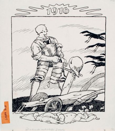 Pen and brush drawing in ink auf chamoisfarbenem Karton. In Tusche signiert u.re. oder u.li. "Traub". In Blei bezeichnet u.Mi. Verso Verlags-Stempel und in rotem Stift bezeichnet u.Mi. Ein Blatt mit Blindstempel li.