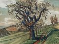 552 Erich Fraaß, Weg mit blühenden Obstbäumen. No date.
