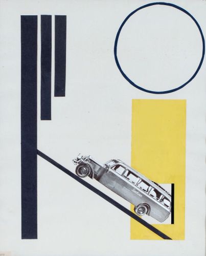 Collage. U.li. typographisch bezeichnet "GORO". Hinter Glas gerahmt.Blatt leicht angeschmutzt und wellig,.