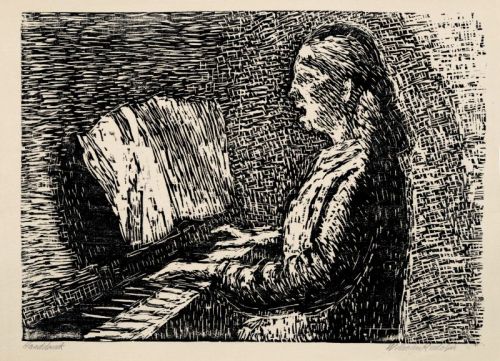 586 Wilhelm Rudolph "Junge Frau am Klavier, singend". Nach 1950.