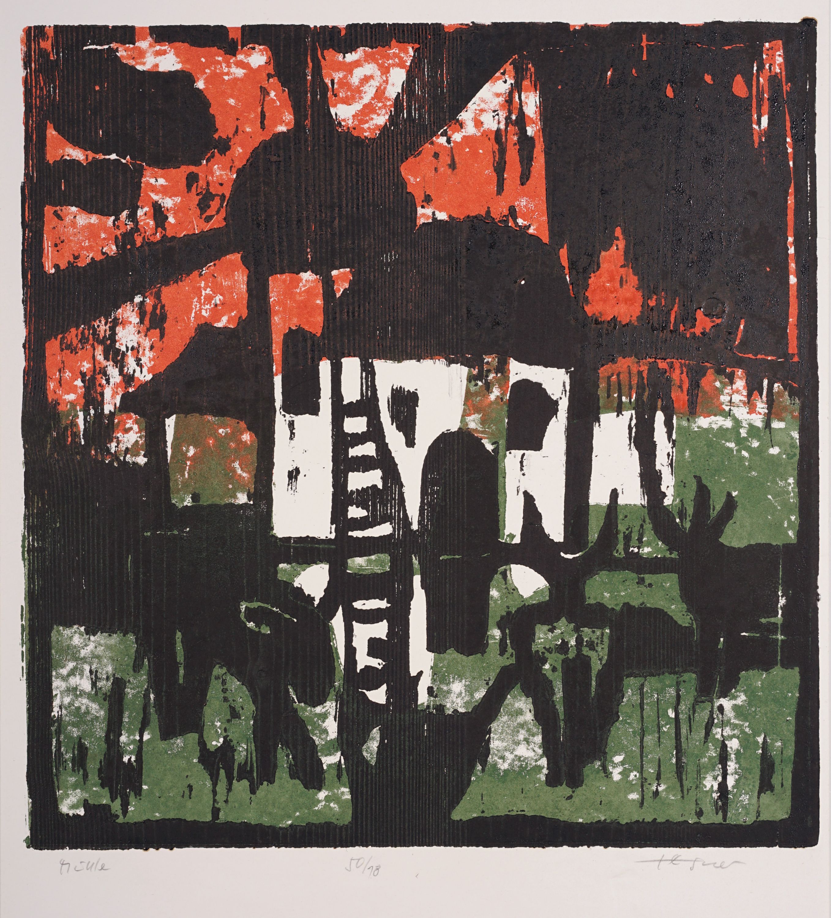 Wood cut in colours. U.re. in Blei signiert "Tetzner", u.Mi. betitelt und u.li. nummeriert "50/18".