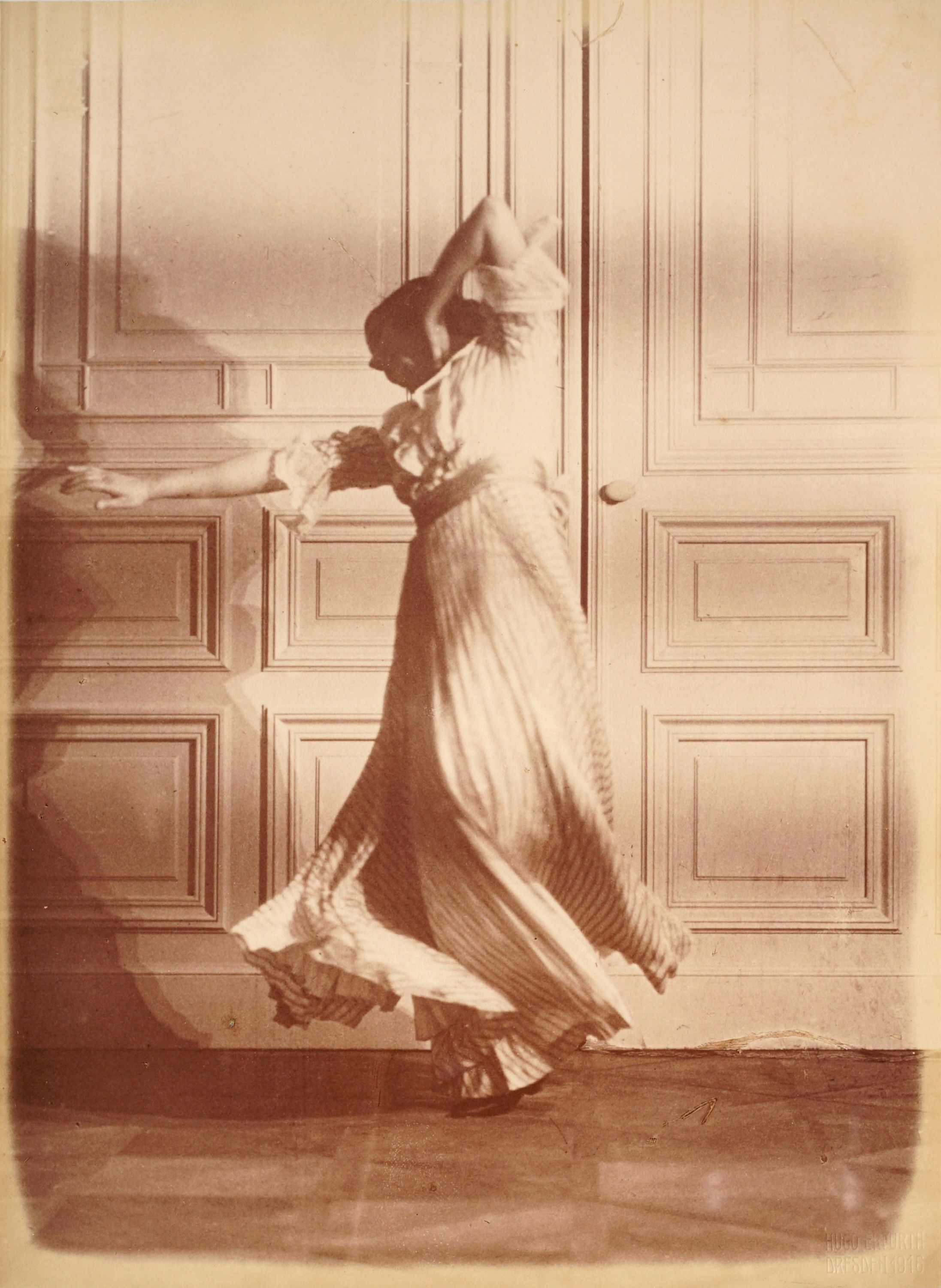 676   Hugo Erfurth, Grete Wiesenthal, tanzend, vor einer Holzvertäfelung. Um 1910.