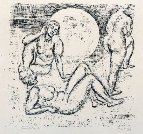 790   Wilhelm Rudolph, Drei weibliche Akte vor großer Sonne. Nach 1945.