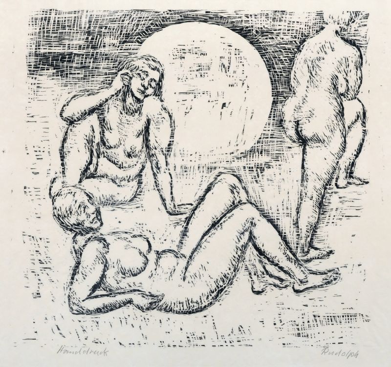 Wood cut on japanese paper. In Blei signiert u.re. "Rudolph" und bezeichnet u.li. "Handdruck".