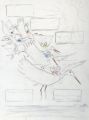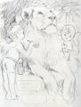 Vereinzelt mit sichtbaren Randläsionen sowie knick- und fingerspurig. Zwei Blätter lichtrandig und mit Stockflecken, eines mit bräunlichen Spritzflecken. Tuschfederzeichnung mit fixiertem Einriss in Darstellungsmitte.