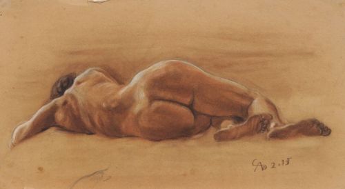 Crayons in colours, weiß gehöht, auf bräunlichem Papier. Ligiert monogrammiert "AC" und datiert u.re.