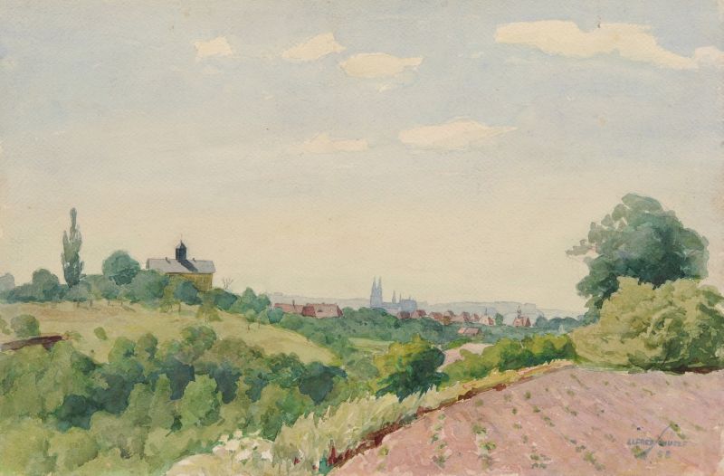 Watercolour and pencil auf festem Papier, auf Karton klebemontiert. Signiert u.re. "Alfred Schütze" und datiert.