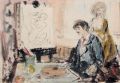 825 Max Schwimmer, Maler und Modell im Atelier. 1940er bis 1950's.
