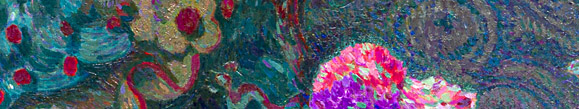 Kleines Löchlein in der Leinwand an Ecke u.li. Malschicht mit vereinzelten Retuschen im u. Randbereich. Wenige unscheinbare Abplatzungen der Malschicht, u.a. in einer Kerze. Seidenmatter Firnisüberzug. Rahmen partiell unscheinbar bestoßen.