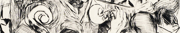 Die dynamische Komposition des vorliegenden Werkes erschließt sich erst nach und nach. Im oberen Drittel verschmelzen die Köpfe