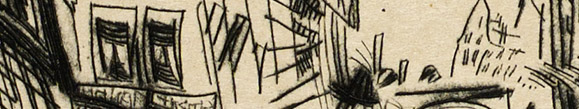 Etching mit Plattenton auf kräftigem, gelblichen Kupferdruckkarton. In der Platte u.li. signiert und datiert "Rich. Müller 1915". Nochmals in Blei signiert "Rich. Müller" sowie nummeriert "94".