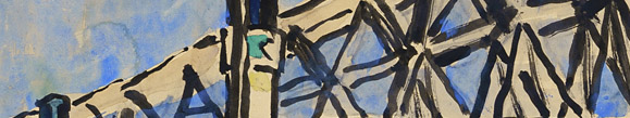 Chalk drawing in colours und Deckfarben auf gelblichem Zeichenkarton. Unsigniert. U.li. betitelt und ausführlich datiert "16.6.53". Verso re. eine Bleistiftskizze und am o. Rand nochmals betitelt. Im Passepartout hinter Glas gerahmt.